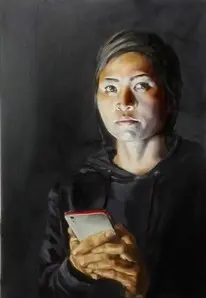 Schnelle, kurzlebige Selbstportraits von jungen Frauen, wie sie unzählige Male gemacht werden, dienten als Vorlage der Übertragung in diese altmeisterliche und zeitüberdauernde Maltechnik. Mehr dazu: